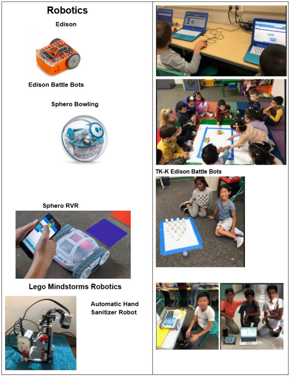 Robotics – Using Edison, Sphero, and Lego Mindstorms, students design and code robots for challenges like Battle Bots, Sphero Bowling, and even automatic hand-sanitizing machines.