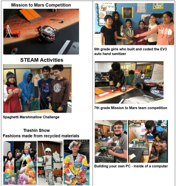 STEAM Projects & Competitions – Students tackle exciting challenges such as the Mission to Mars team competition, spaghetti marshmallow towers, and the Trashin’ Show fashion project with recycled materials.